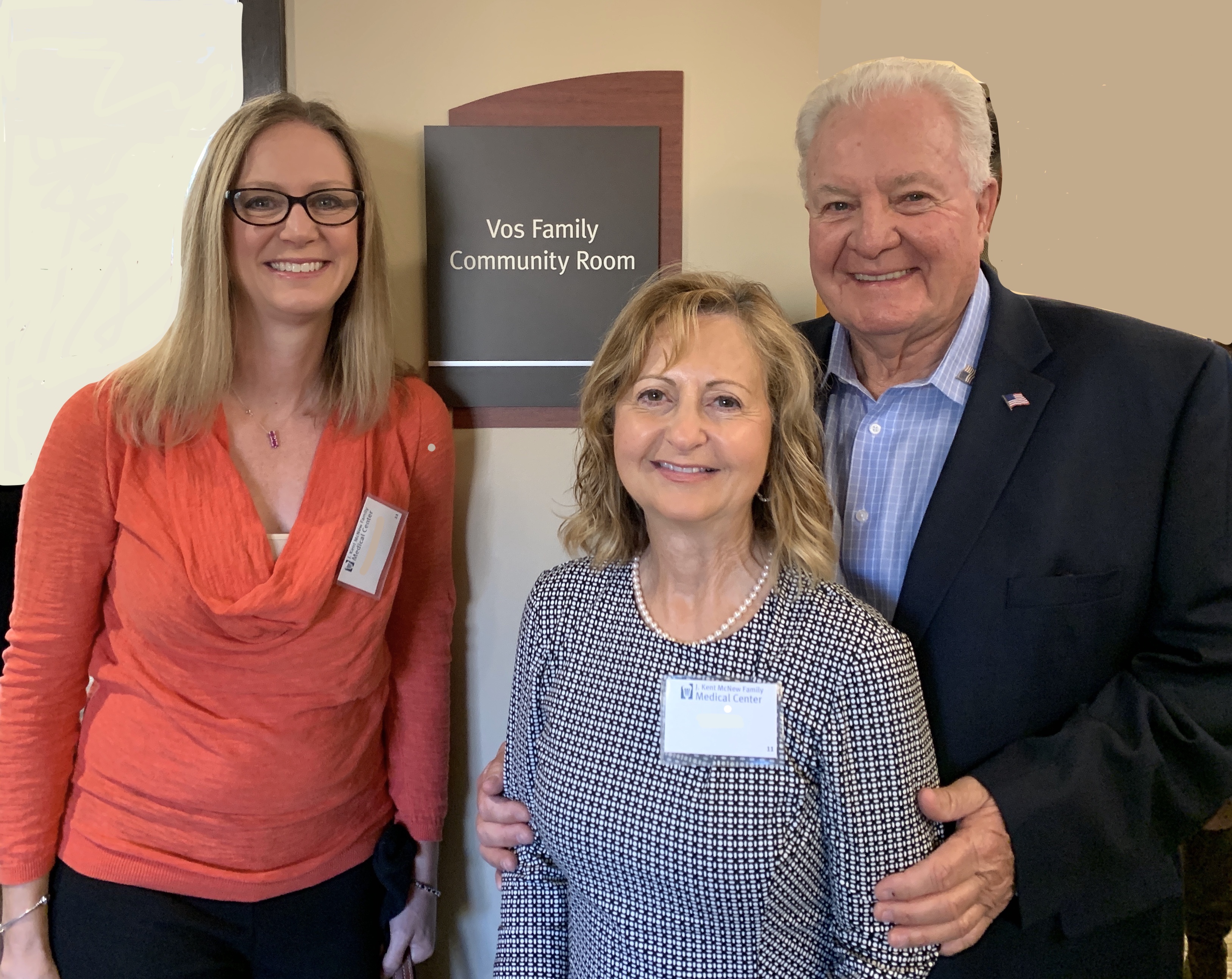 Tricia, Chris and John Vos representing the John Vos Family Foundation at the J. Kent McNew Family Medical Center opening, March 2020.