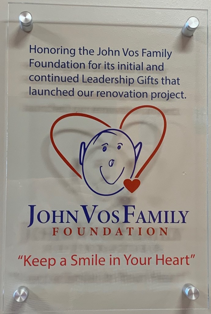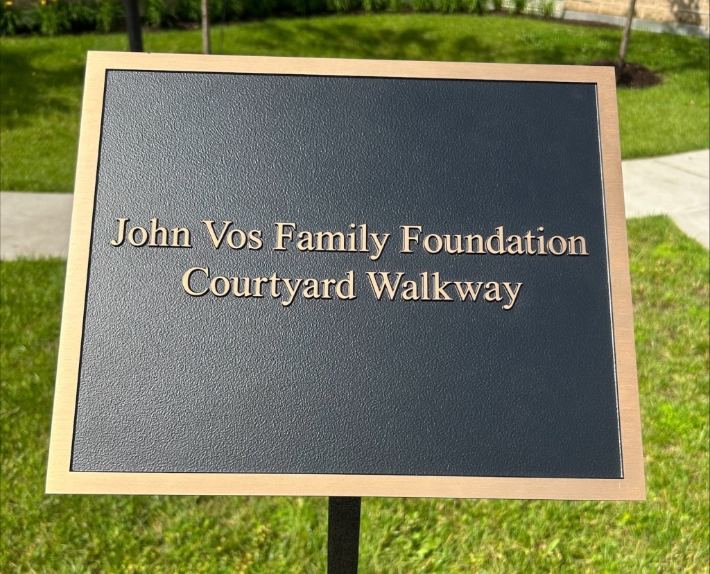 The John Vos Family Foundation was honored with the placement of a plaque recognizing their contributions to the J. Kent McNew Family Medical Center. The plaque is in the community courtyard of this Mental Health Facility. Recently, the Foundation made a major gift to fund an additional two new rooms inside the facility.