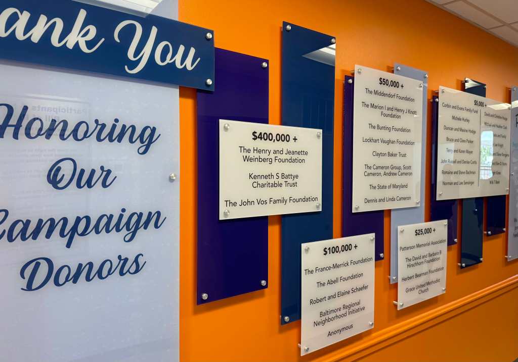 Manna House has now received from the City of Baltimore to reopen after completion of construction during our Capital Campaign. The John Vos Family Foundation was instrumental in both initiating and sustaining this project. In addition to the “John Vos Family Foundation” on the outside wall of our building, the foundation is honored on the donor wall as our clients walk into the building and a special plaque opposite the donor wall telling all that enter about the critical initial “leadership” gift that launched this campaign. It is both a wonderful legacy and a reminder of the tangible impact of Manna House as they support the homeless and poor.